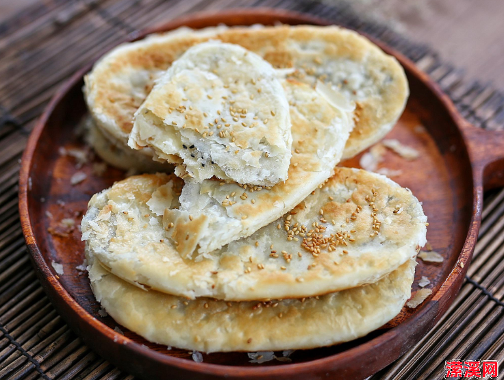 酥饼微微鼓起,颜色金黄,一捏就碎,里面是空心的。